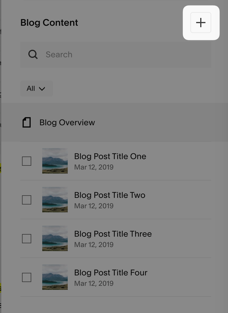 If not, or you want to create more, click the large plus sign next to the Blog Content heading to create a new post.
