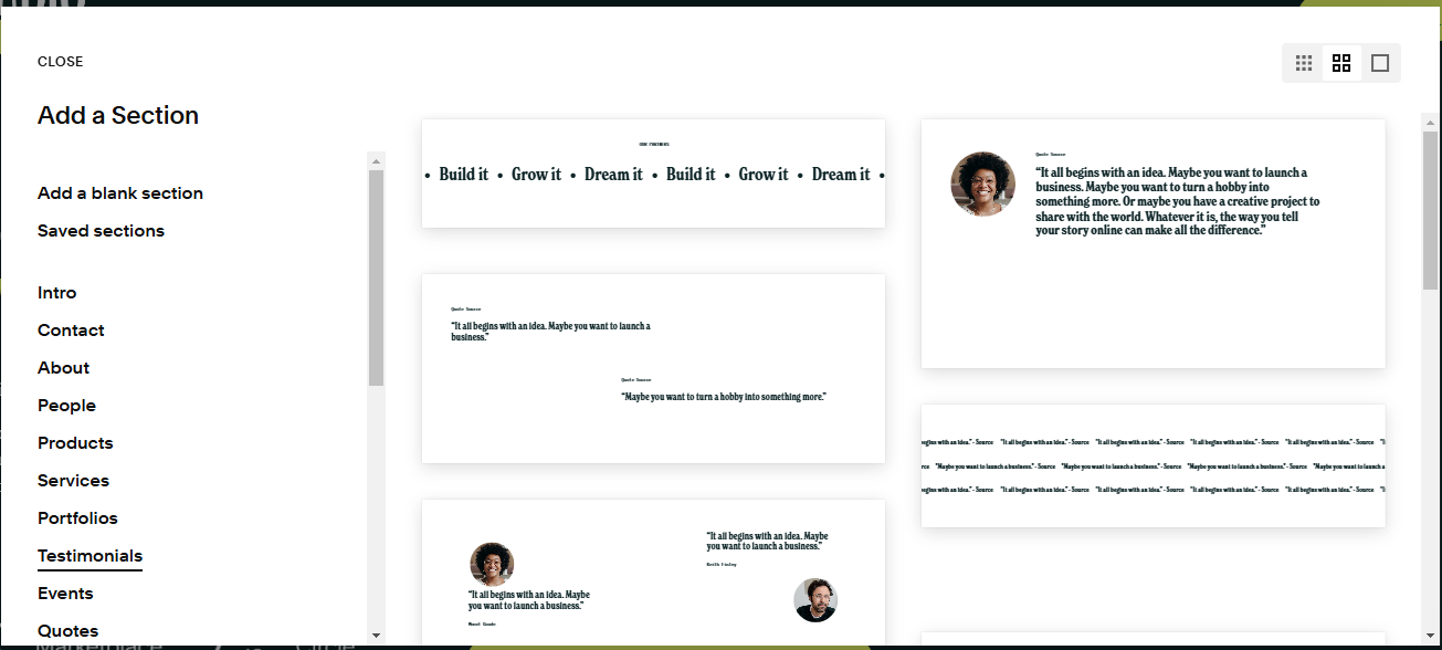 You can easily add a testimonials section to an existing page by going to Add Section > Testimonials > then choose the layout design you prefer!